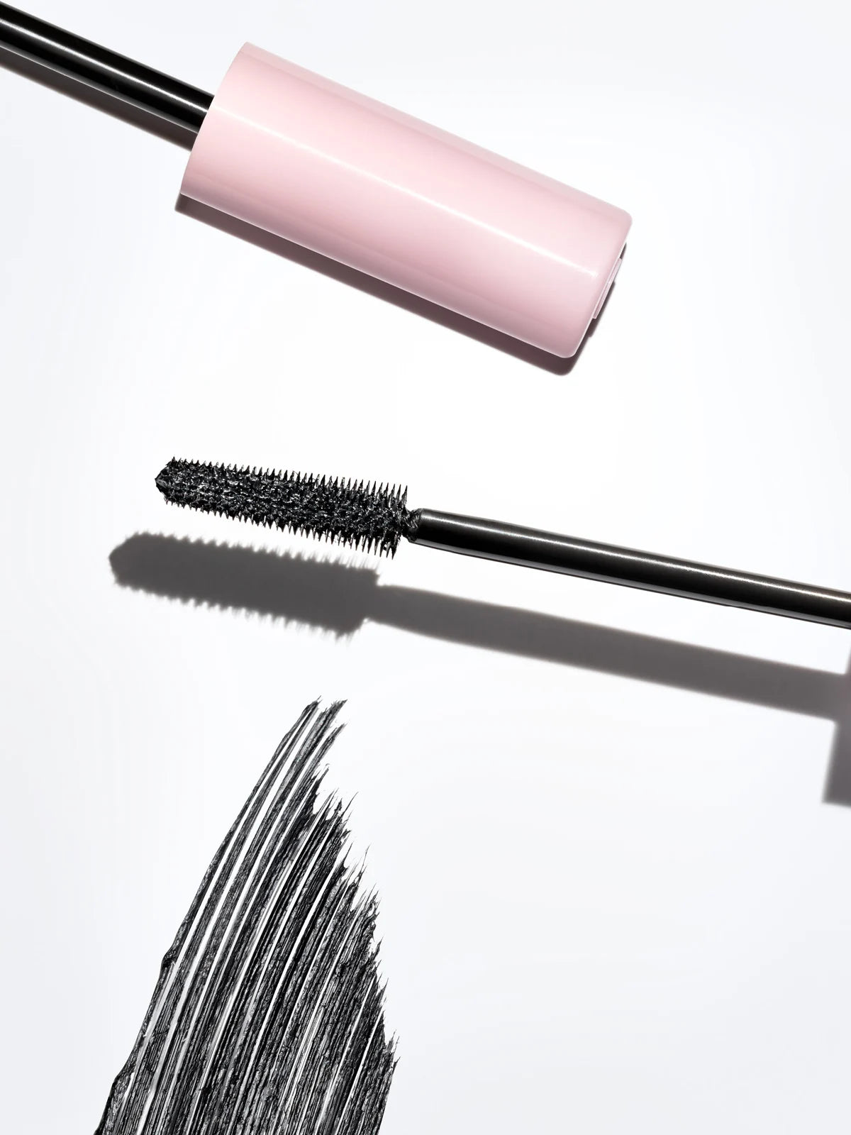 Máscara de pestañas que alarga y levanta visiblemente las pestañas (sin manchas ni escamas) para un efecto de extensiones. Resistente al agua.
