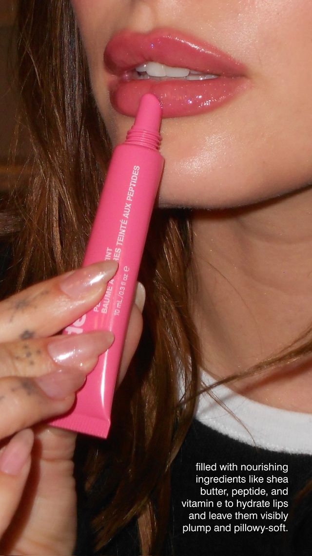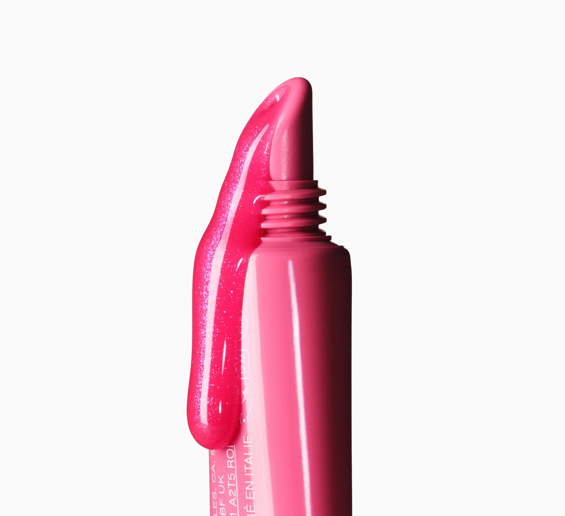 Nuestro tinte labial con péptidos rosados más intenso hasta el momento. Es un brillo rosado intenso, translúcido pero modulable, salpicado de destellos rosados y azules. Aplícalo para lograr un acabado brillante y resplandeciente en los labios y un aroma a galleta de azúcar recién horneada.