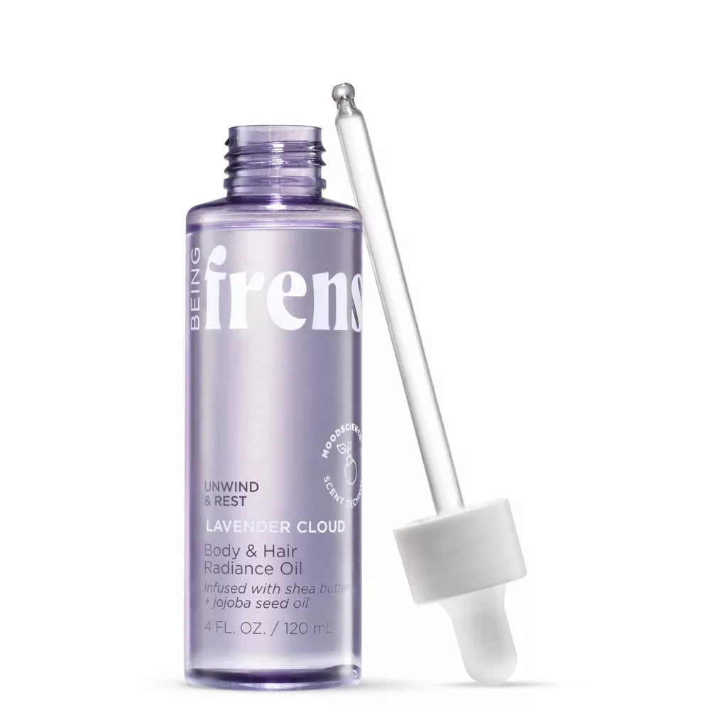 Cumpla con sus rituales de bienestar diarios, infundidos con tecnología de aromas que mejoran el estado de ánimo. Este aceite radiante para el cuerpo y el cabello de Being Frenshe es un aceite versátil y suave como la seda infundido con aceite de semilla de jojoba, aceite de semilla de girasol y manteca de karité. Ayuda a suavizar y nutrir sin dejar una sensación grasosa. Use el aceite como humectante corporal para hidratar la piel seca o puede usarlo como aceite para el cabello para el cabello seco y dañado.