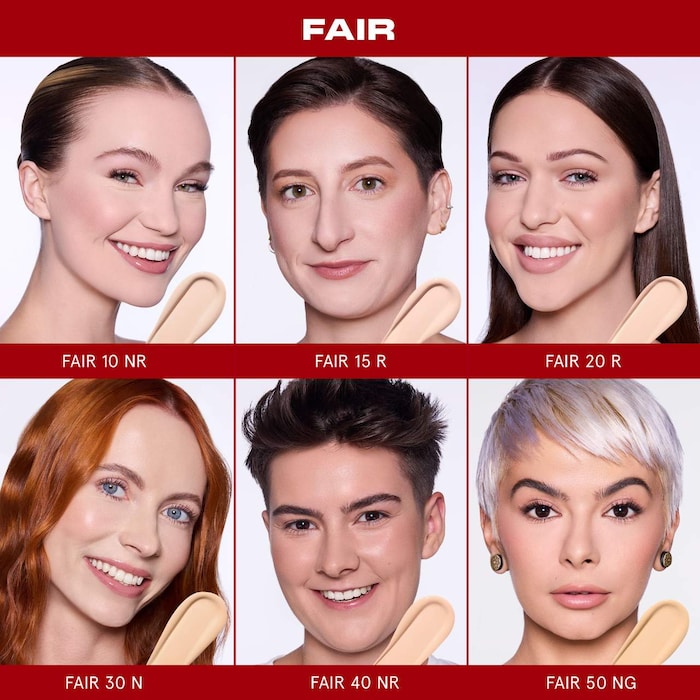 Una base de maquillaje de larga duración, resistente al agua y al sudor, formulada con solo 16 ingredientes que brinda cobertura total y máxima comodidad para difuminar y suavizar visiblemente sin obstruir los poros.
