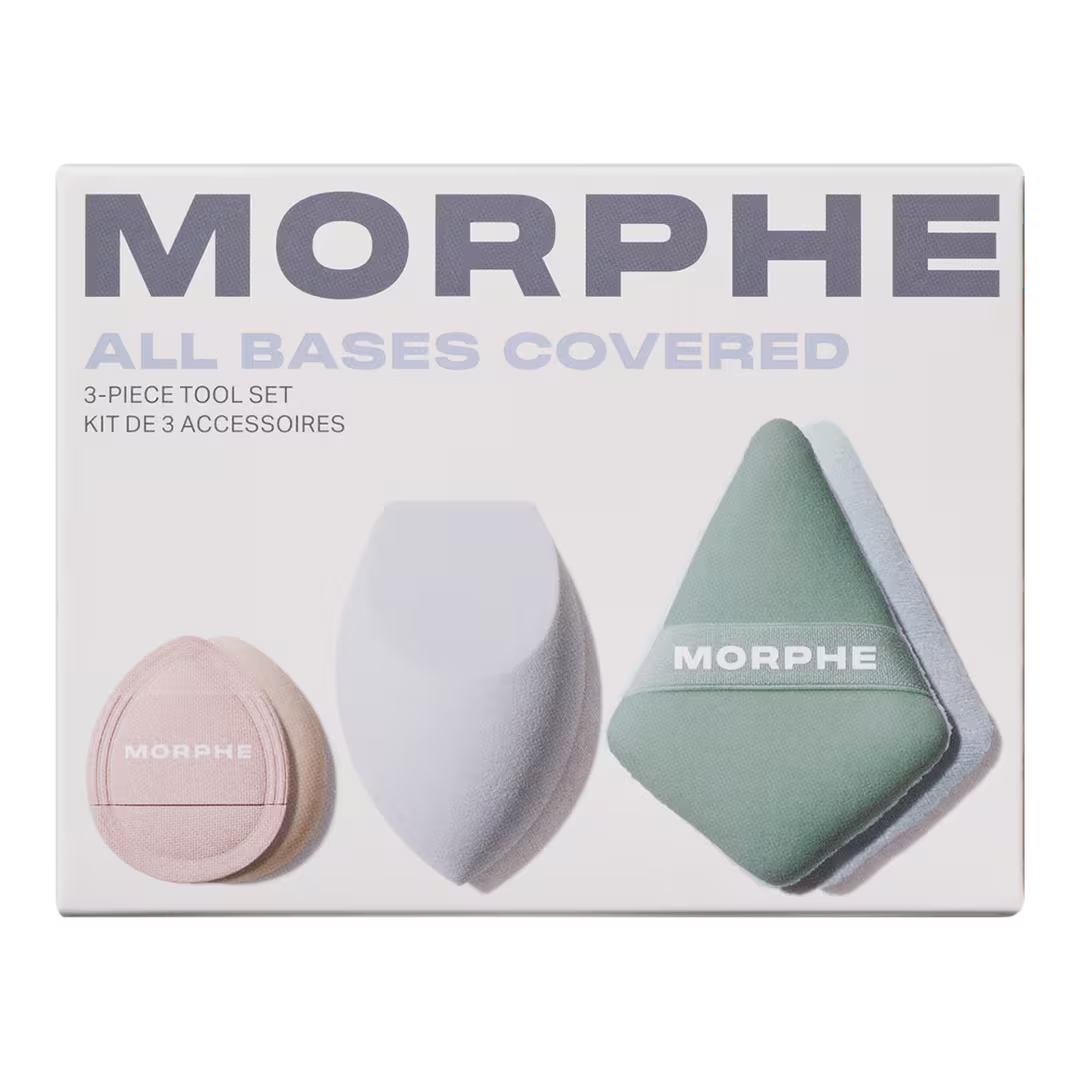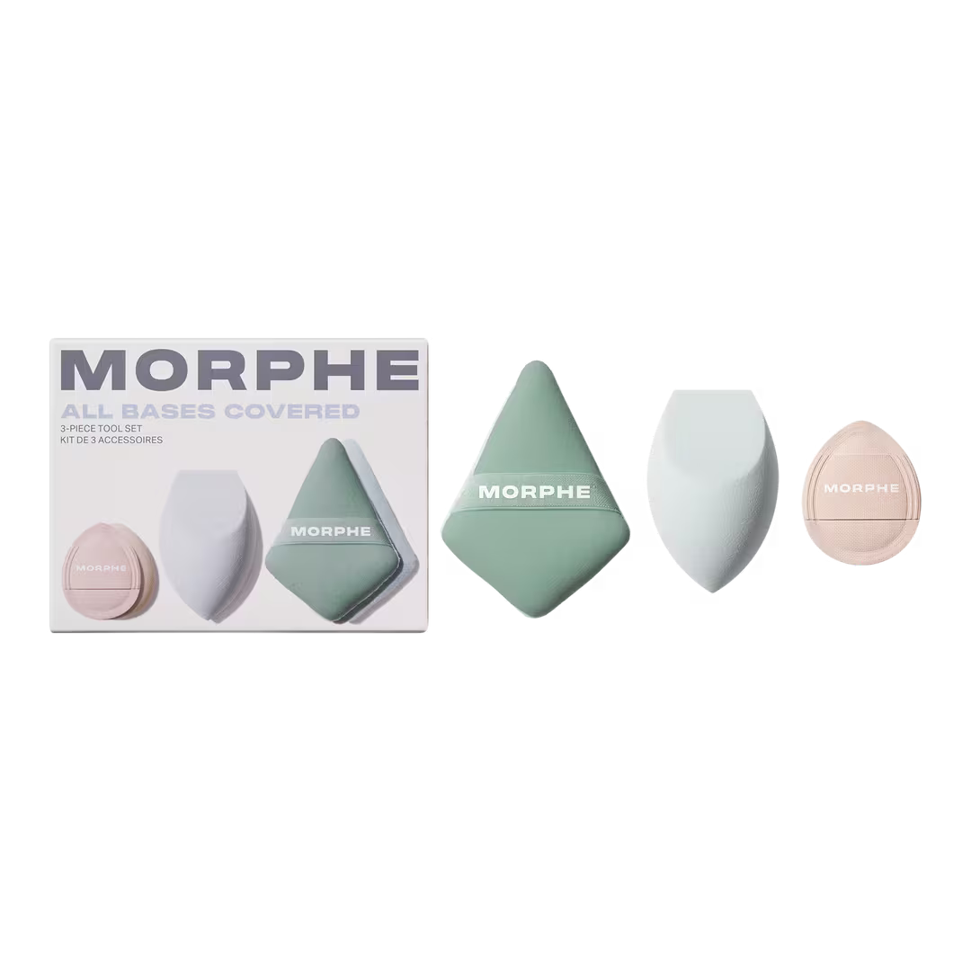 Dale forma a tu rutina de maquillaje con el Set de 3 Herramientas All Bases Covered de Morphe. Este trío de herramientas exclusivas de Morphe incluye una esponja multifuncional y dos borlas de precisión para aplicar, modelar y difuminar fácilmente todos tus productos faciales, desde la base hasta los polvos fijadores.