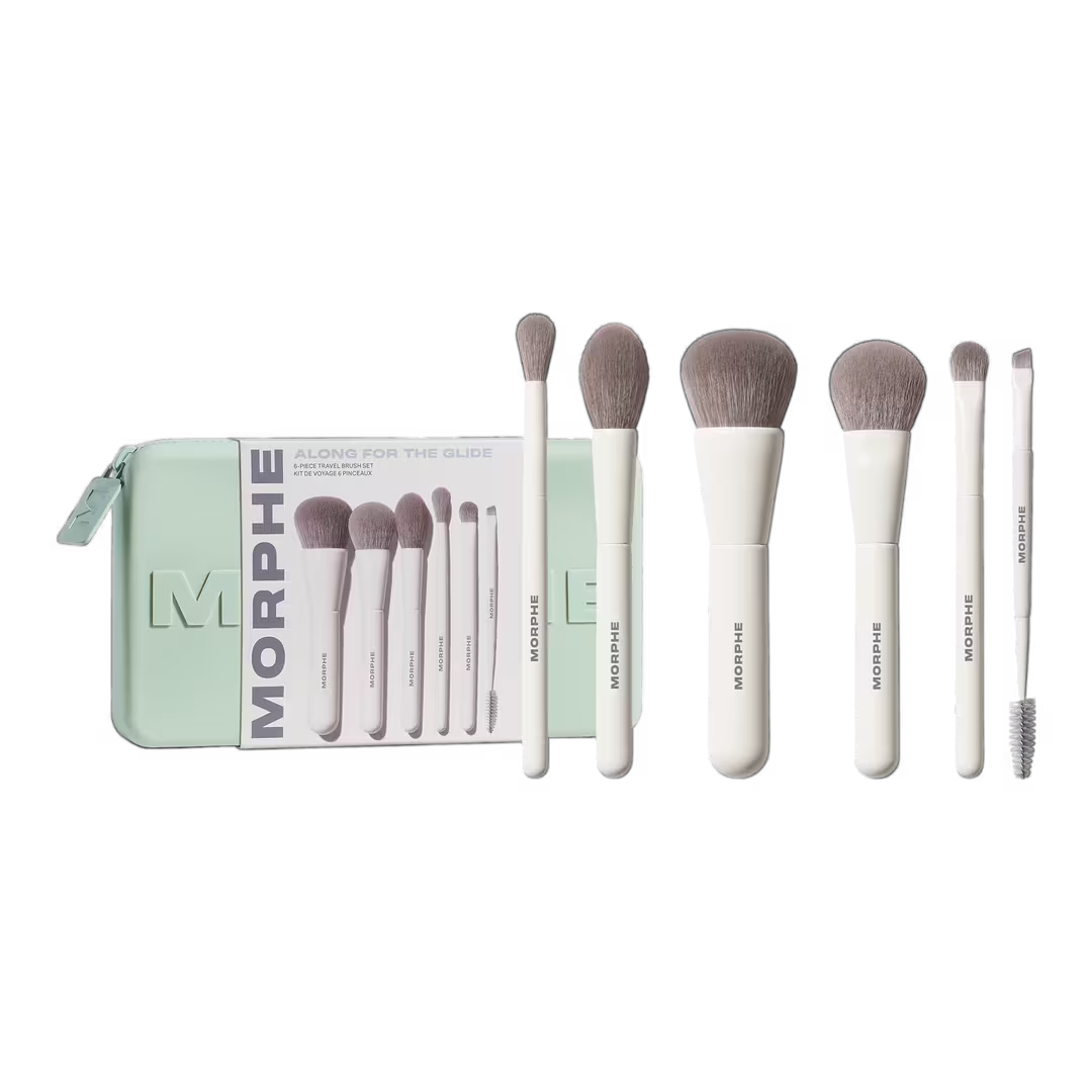 Aprovecha al máximo tu maquillaje estés donde estés con el set de 6 brochas de viaje Along for the Glide de Morphe. Estas brochas esenciales para rostro y ojos están diseñadas por expertos con mangos compactos y fáciles de guardar, y cabezales de tamaño completo y perfeccionados. Incluye una bolsa de viaje fácil de limpiar.