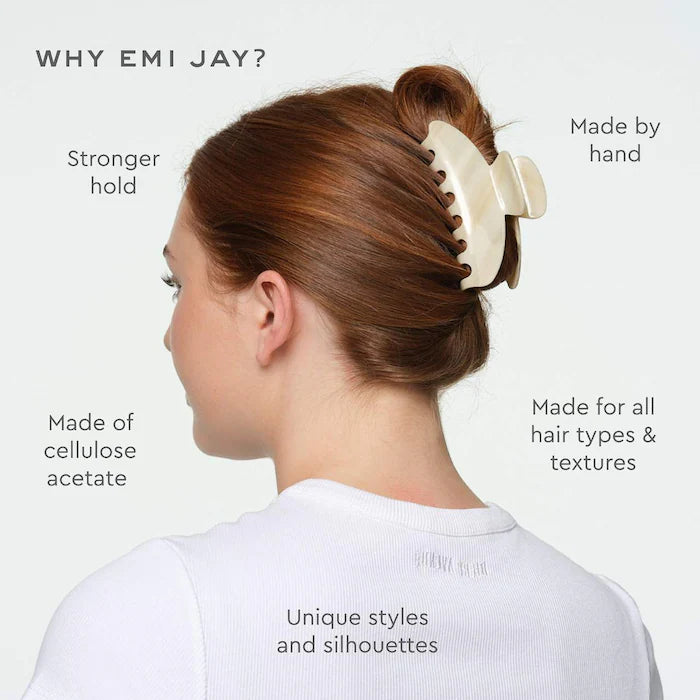 Un clip de garra diseñado para sostener cómodamente una cabellera completa, el accesorio para el cabello más icónico de Emi Jay deja huella dondequiera que vayas.