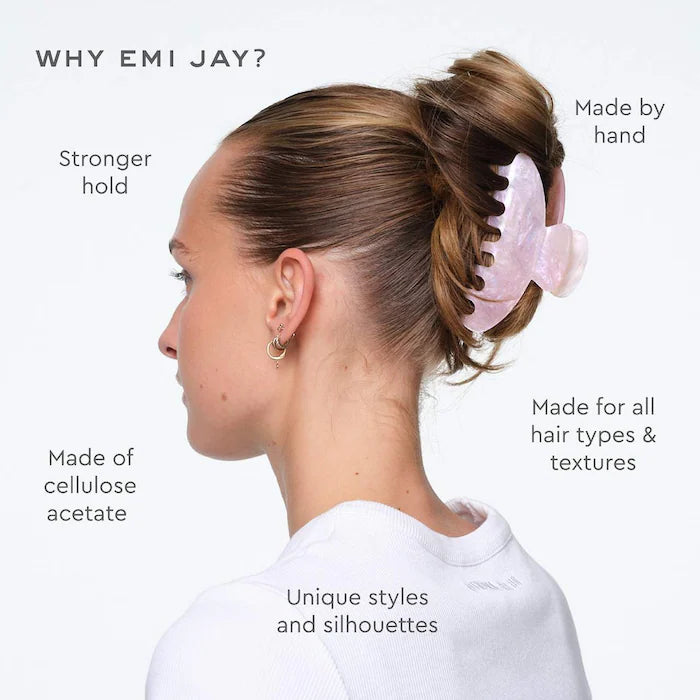 Un clip de garra diseñado para sostener cómodamente una cabellera completa, el accesorio para el cabello más icónico de Emi Jay deja huella dondequiera que vayas.
