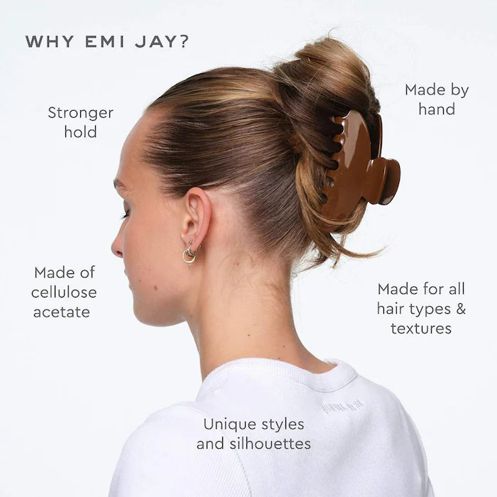 Un clip de garra diseñado para sostener cómodamente una cabellera completa, el accesorio para el cabello más icónico de Emi Jay deja huella dondequiera que vayas.