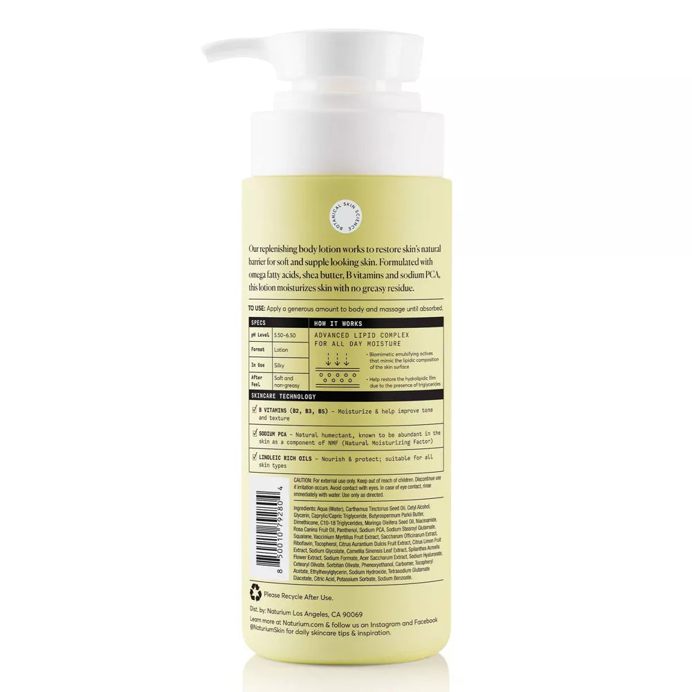 Nuestra loción corporal restauradora actúa para reponer la humedad, dejando la piel suave, flexible y tersa. Formulada con ácidos grasos omega, manteca de karité, vitaminas B y PCA sódica, esta loción hidrata la piel y se absorbe rápidamente sin dejar residuos grasos.