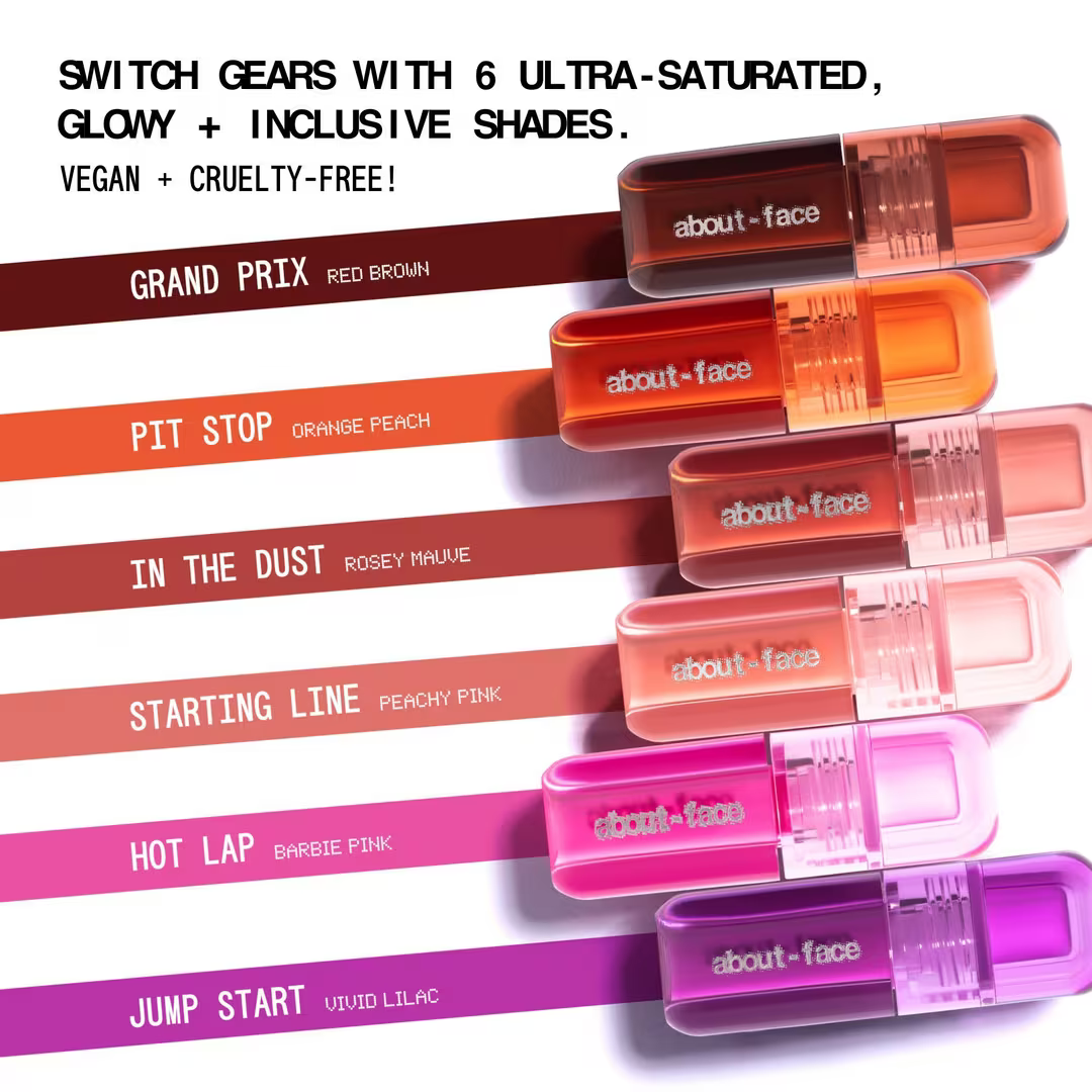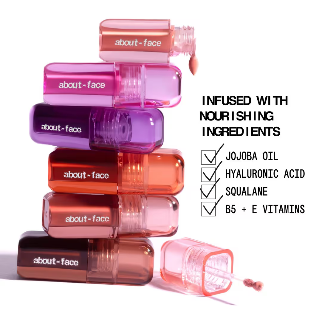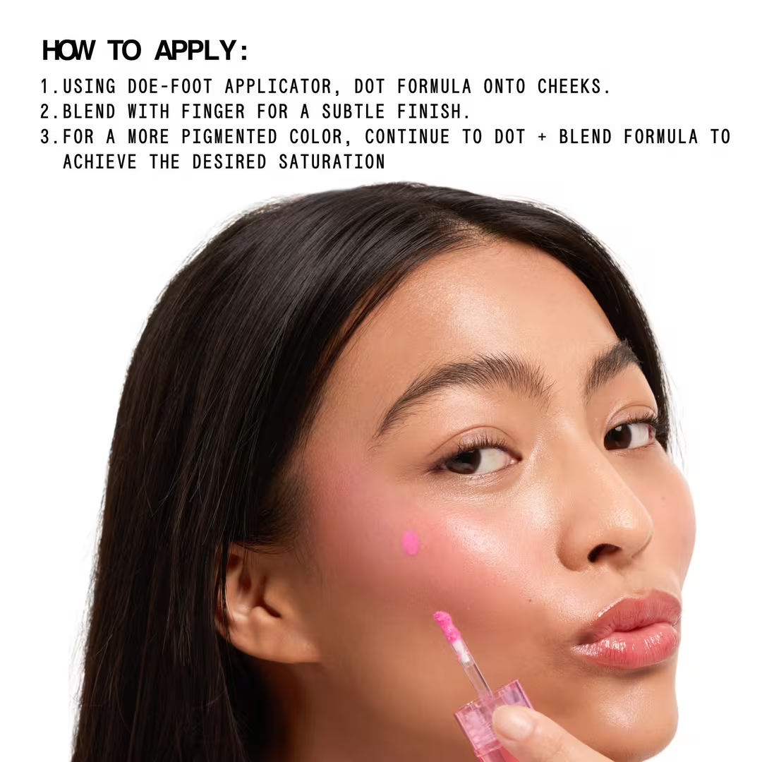 El rubor líquido Blush Rush de About-Face es un rubor fluido y ultra pigmentado que se difumina perfectamente y brilla en la piel.