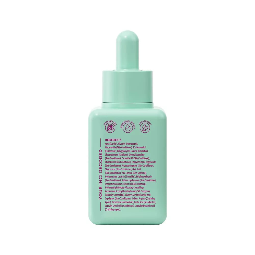 Este suero facial clarificante suave pero efectivo equilibra la piel propensa a las manchas mientras apoya la función de barrera de la piel para una tez más calmada y clara.