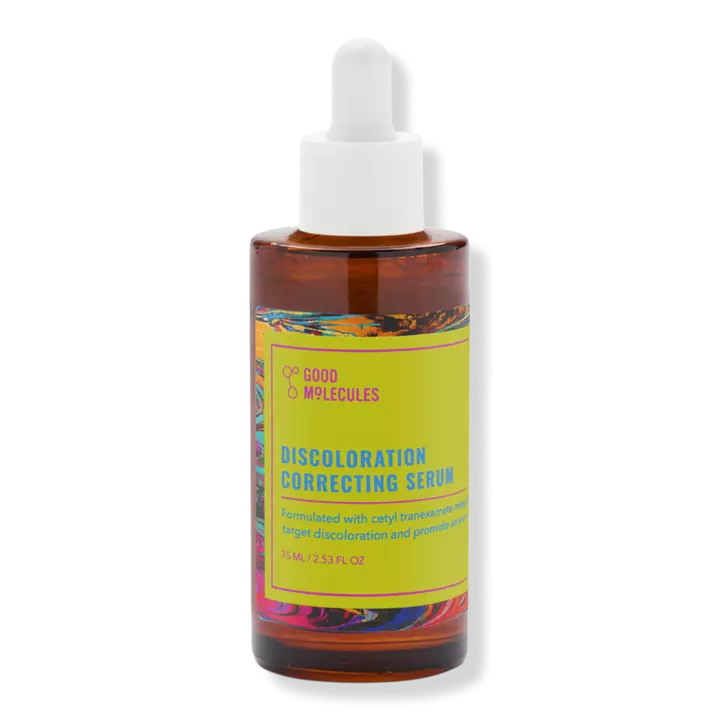 Dirigido a la hiperpigmentación y el tono irregular de la piel, el Suero Corrector de Decoloración de Good Molecules utiliza una forma avanzada de ácido tranexámico para mejorar visiblemente la apariencia de manchas oscuras, cicatrices de acné, melasma y daño solar.