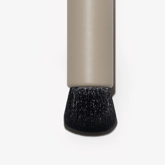 Una brocha hecha de fibras veganas sintéticas, perfecta para difuminar y recoger la pequeña cantidad de producto necesaria para construir el color deseado.