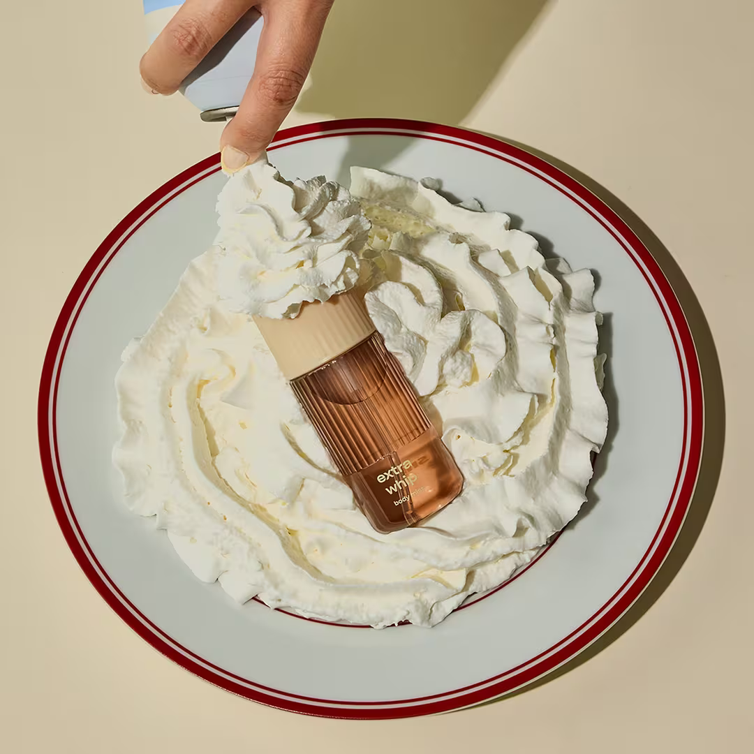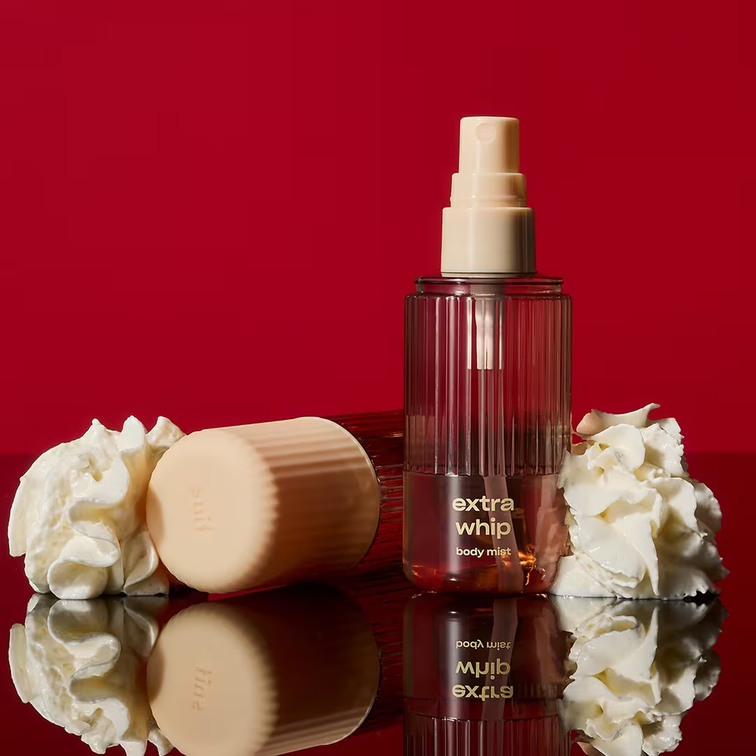 Extra Whip Body Mist es más fresco que la crema batida directamente de la lata, con una mezcla nostálgica de azúcar glas, vainilla y aldehídos fríos con sándalo lechoso y almizcle esponjoso.