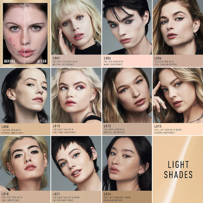 Una base de suero liviana de cobertura total que se funde y se adapta a la piel para lograr un acabado natural, uniforme y resistente.