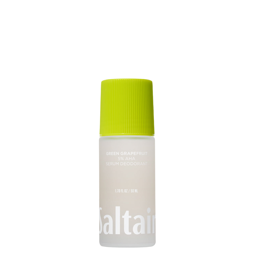 Nuestro desodorante en suero AHA de pomelo verde está formulado con una mezcla multiácida de mandélico, láctico y polihidroxi que acidifica la piel para combatir el olor, aclarar el aspecto de la decoloración y suavizar y reducir el aspecto de las células encarnadas.