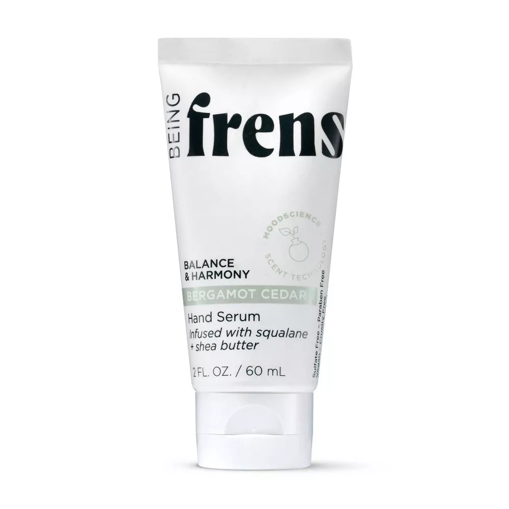 Cumpla con sus rituales de bienestar diarios, infundidos con tecnología de aromas que mejoran el estado de ánimo. Este suero de manos Being Frenshe es un suero de manos hidratante y de rápida absorción con escualano, manteca de karité y aceites esenciales, que deja las manos con una sensación sedosa y suave. También es de tamaño de viaje para que puedas hidratar la piel seca sin importar dónde estés.