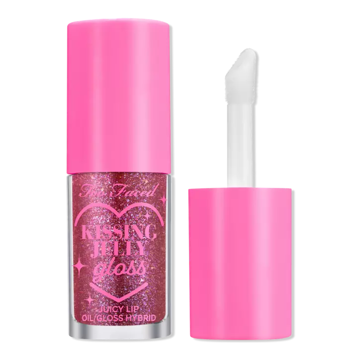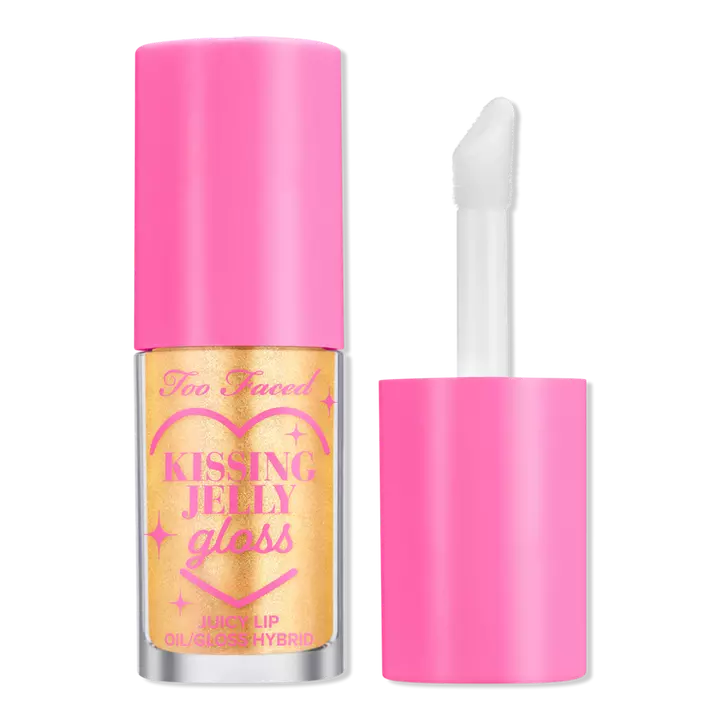 Too Faced Kissing Jelly Ultra-Nourishing Non-Sticky Lip Oil Gloss Hybrid es el brillo labial que no puedes vivir sin él. Esta fórmula de aceite labial brillante se hidrata con aceites naturales y deja un toque de color que te proporciona una hidratación instantánea como la de un aceite labial con el brillo dulce de un brillo labial.
