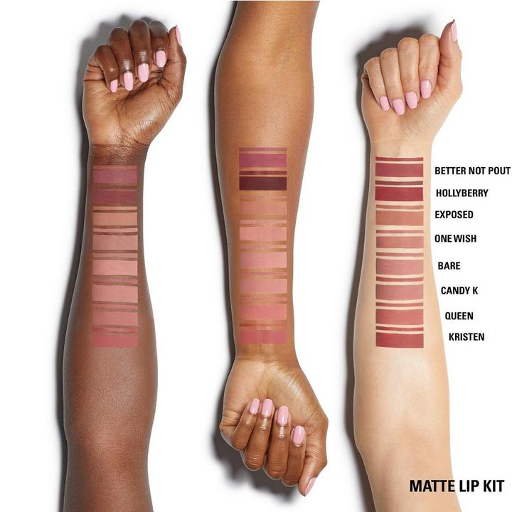 El kit de labios mate Kylie Cosmetics es un par todo en uno que incluye un lápiz labial líquido mate de tamaño completo y un delineador de labios en lápiz de tamaño completo. Completa tus looks con labios mate de larga duración.