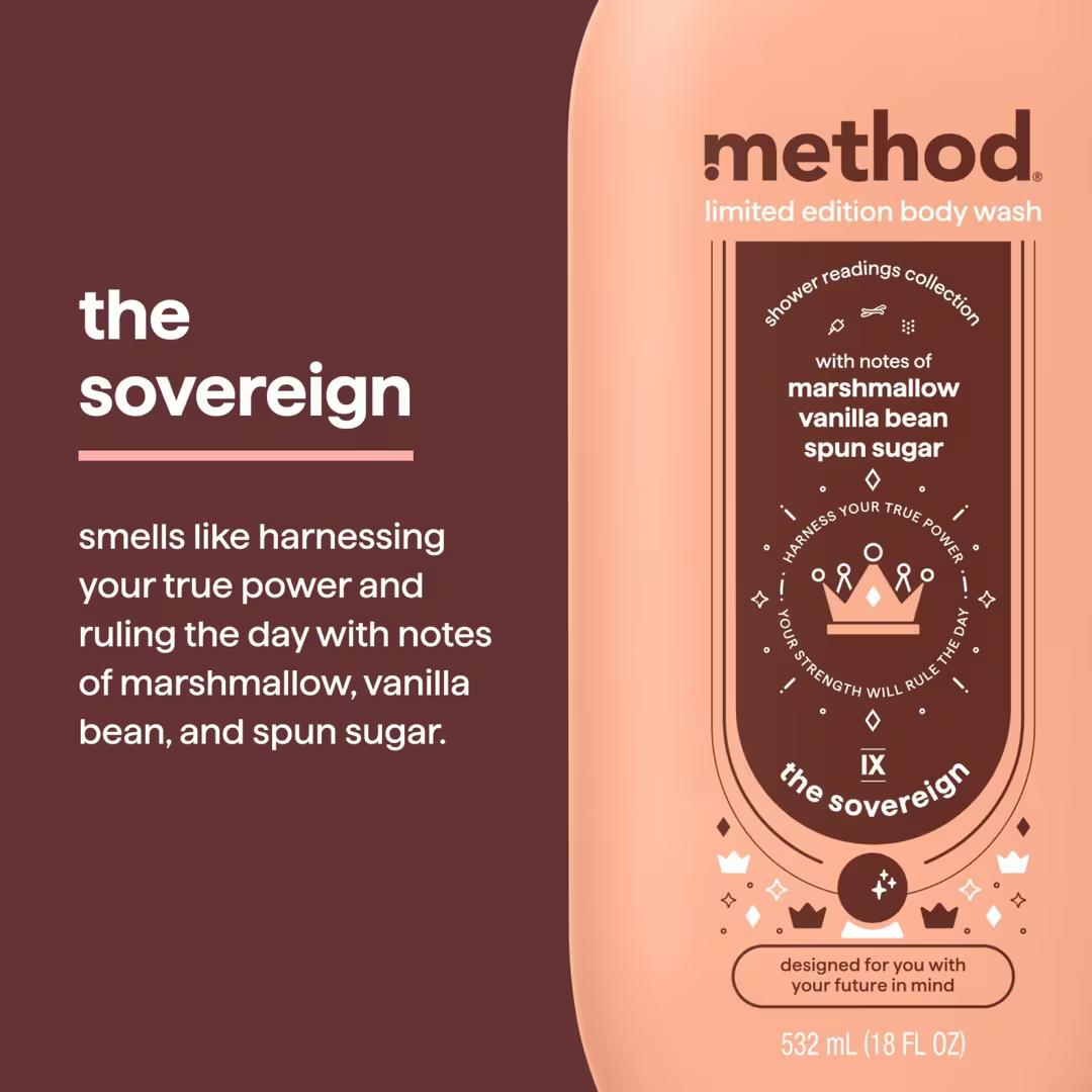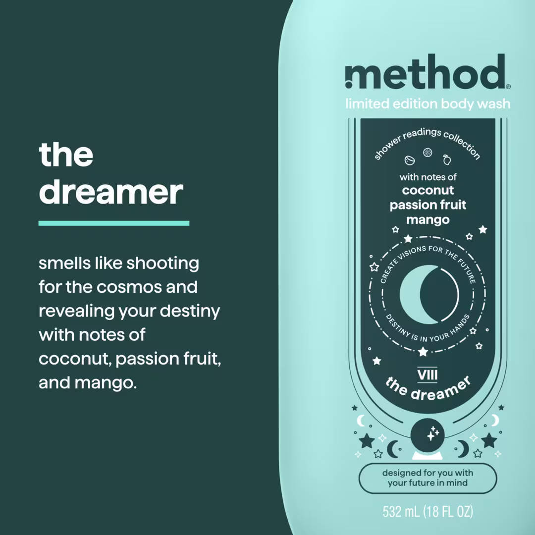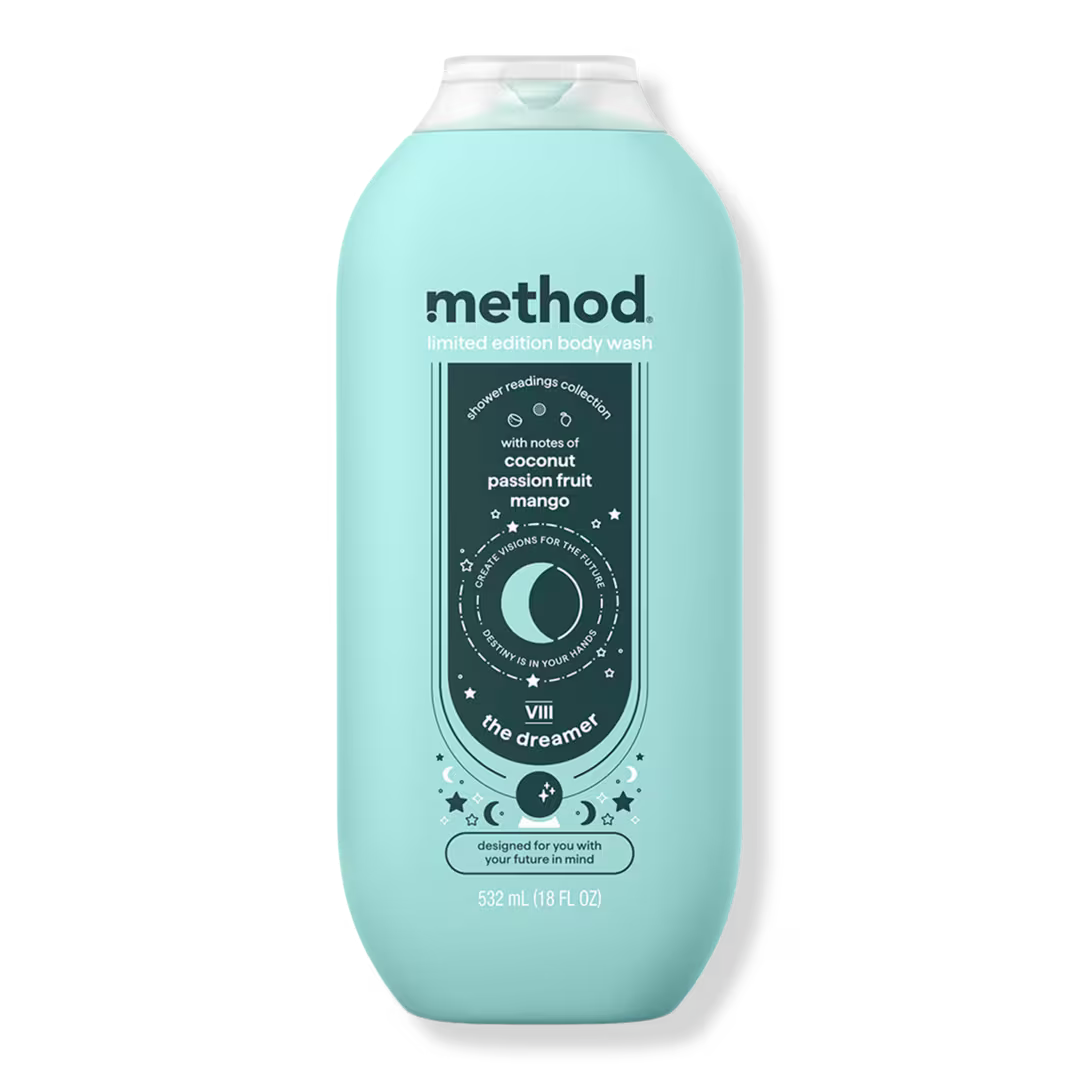 ¿Listo para leer tu fortuna? Apunta hoy a las estrellas con un gel de ducha que te ofrece una visión de tu futuro. El gel de ducha Shower Readings de edición limitada de Method deja tu piel limpia, fresca y divinamente suave. El cosmos sin duda iluminará tu destino.