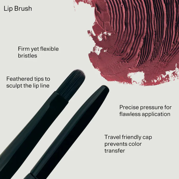 Un pincel de labios esencial para mejorar tu aplicación con cerdas veganas firmes pero flexibles y una tapa para usar en movimiento.