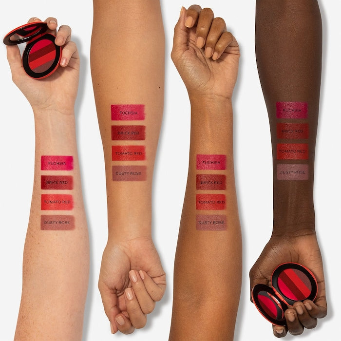 Una paleta de labios limpia y personalizable en cuatro favorecedores tonos ante mate elaborados con pigmentos 100 por ciento naturales.