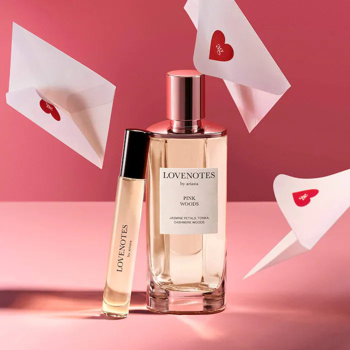 LOVENOTES Pink Woods es cautivador y atractivo al instante. Esta fragancia se abre con notas chispeantes de bergamota italiana envueltas en un atractivo vetiver y flor de loto. Una mezcla de haba tonka y maderas de cachemira brilla, creando una firma inesperada e inolvidable.