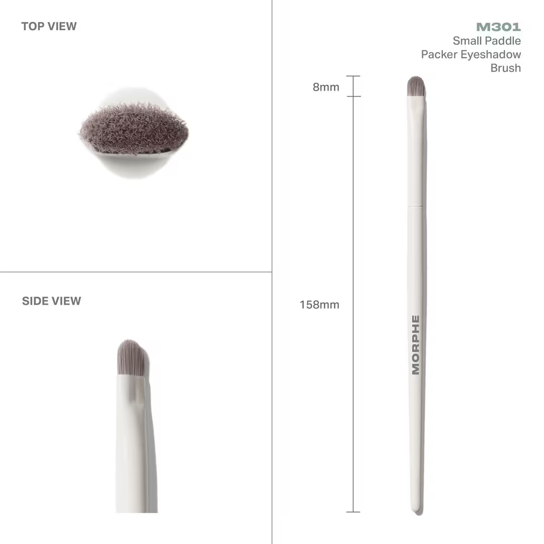 El tamaño más pequeño de la brocha para sombras de ojos M301 Small Paddle Packer de Morphe te ofrece una aplicación precisa, ideal para acentuar la mirada. Usa la paleta para aplicar y crear color con toques suaves. Usa la punta para definir el pliegue y la línea de las pestañas o difuminar la aplicación.