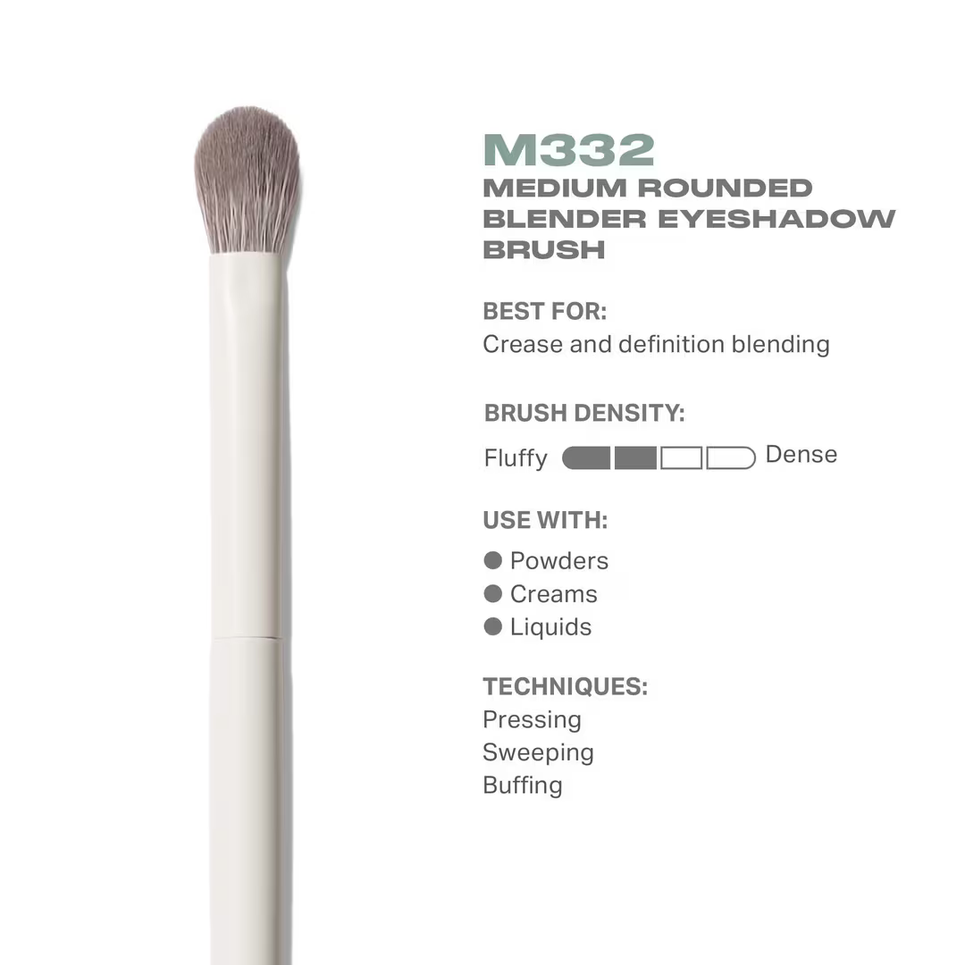 La brocha para sombras de ojos más versátil de Morphe, la M332 Medium Rounded Blender Eyeshadow Brush, es increíblemente versátil. Úsala de lado para aplicar una capa suave de color, con la punta para rellenar los pliegues y, con movimientos de vaivén, para difuminar la aplicación.