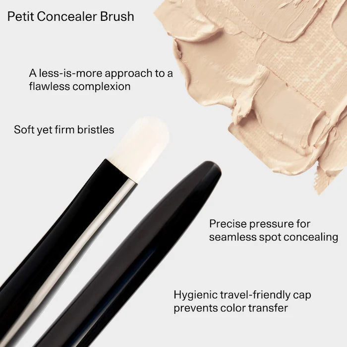 Un pincel corrector impecable, para ocultar imperfecciones con precisión, con cerdas veganas firmes pero flexibles y una tapa para uso higiénico en cualquier lugar.