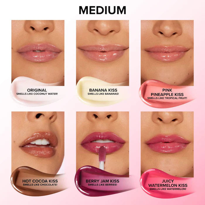 Un bálsamo labial líquido rico y cremoso con aceites de frutas, mantecas acondicionadoras y ácido hialurónico que puedes usar de día y de noche.
