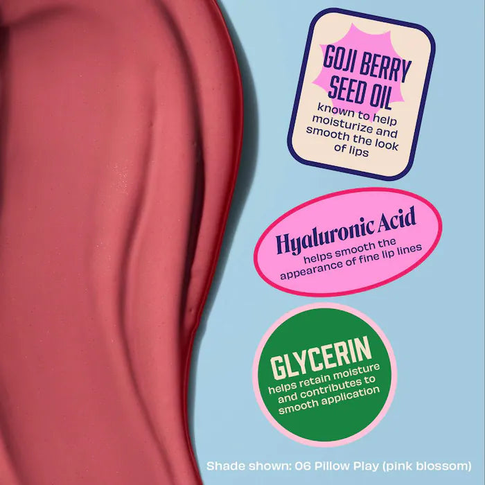 Un tinte labial mate y de larga duración que proporciona a los labios un color e hidratación que no se corren para una sensación cómoda e hidratante y un acabado aterciopelado suave y difuminado.