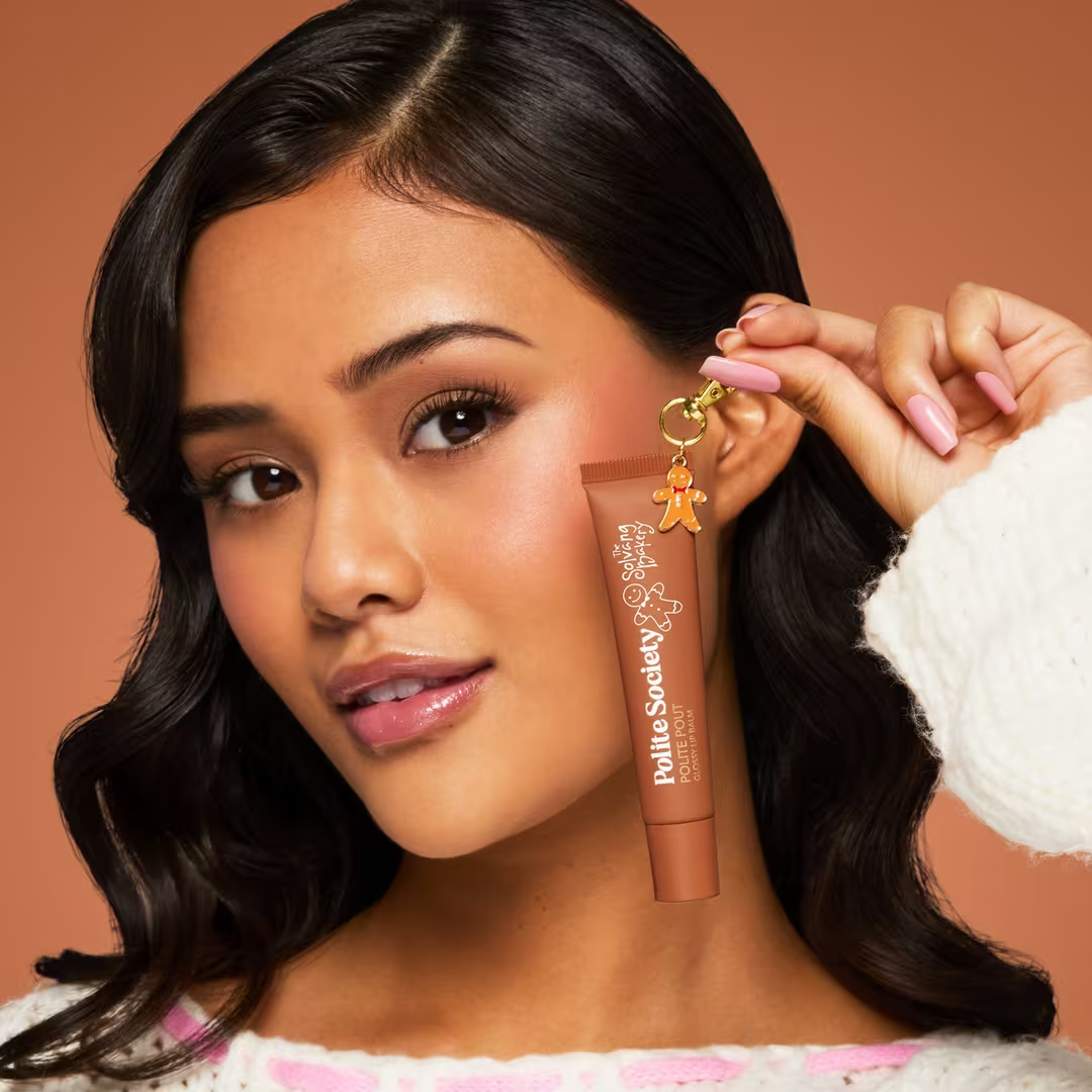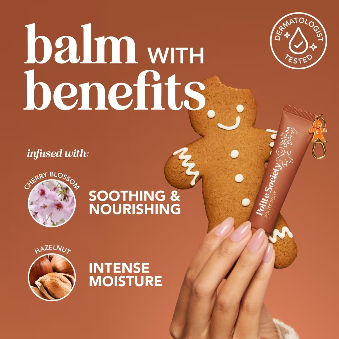 Polite Society y The Solvang Bakery presentan un exclusivo bálsamo labial brillante Polite Pout en sabor a pan de jengibre: un tono de edición limitada con un delicioso sabor cálido y especiado.