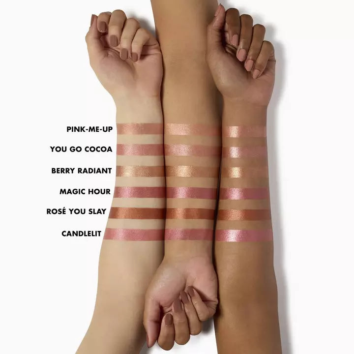 Una varita de rubor líquido brillante con un aplicador de punta acolchada para dar a las mejillas un toque de color radiante.