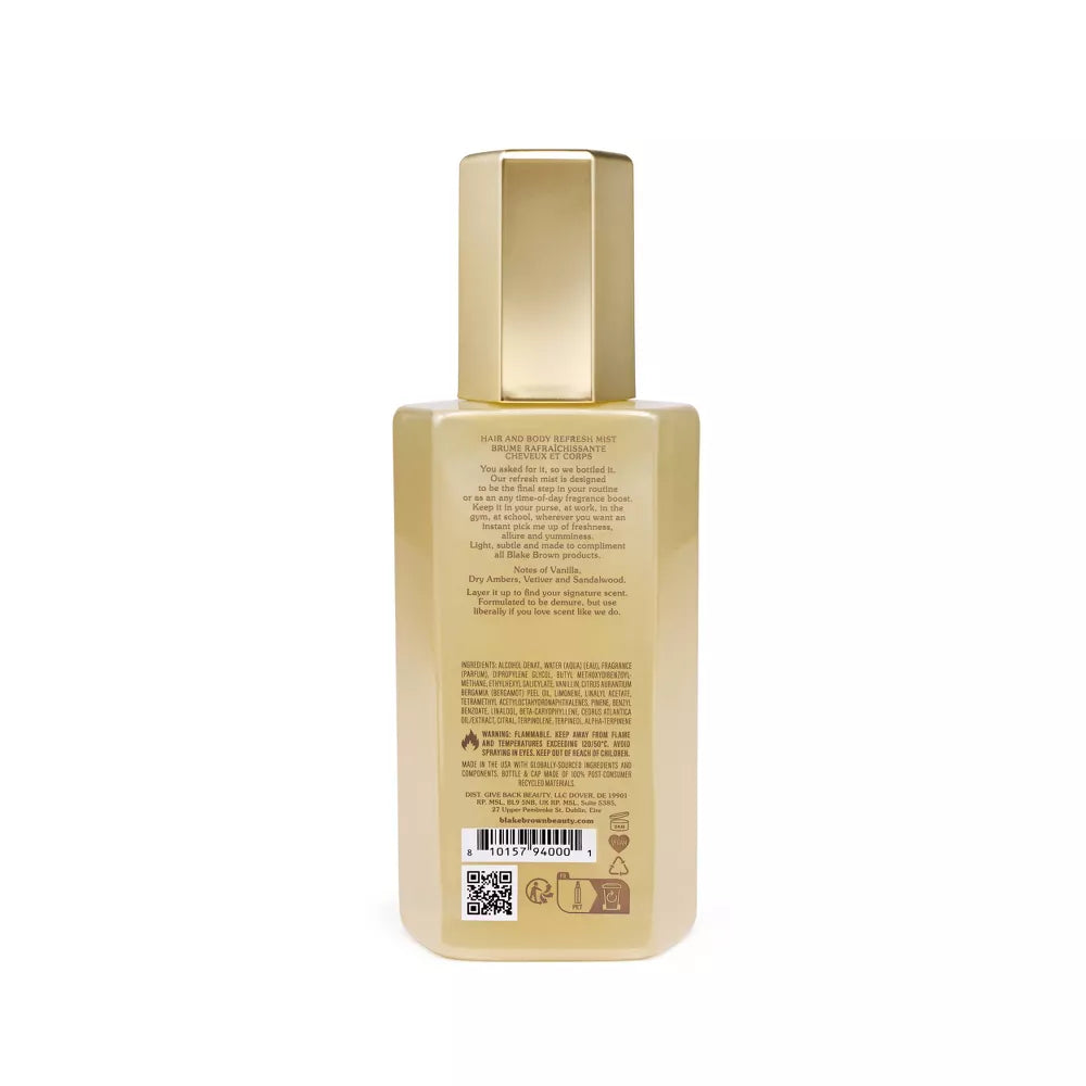 Blake Brown Hair and Body Refresh Mist está diseñado para ser el último paso de tu rutina o como un extra de fragancia para cualquier momento del día. Llévalo en tu bolso, en el cajón del trabajo, en el gimnasio, en la escuela, donde quieras un toque instantáneo de frescura, encanto y exquisitez.