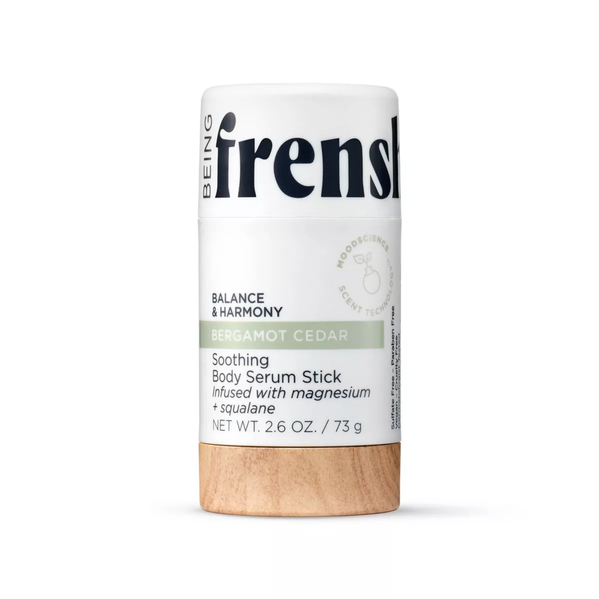 Conozca sus rituales de bienestar cotidianos, infundidos con tecnología de aromas que mejoran el estado de ánimo. Este suero corporal en barra Being Frenshe está enriquecido con magnesio, escualeno, extracto de agua de mar y aceites esenciales para una hidratación y relajación específicas.