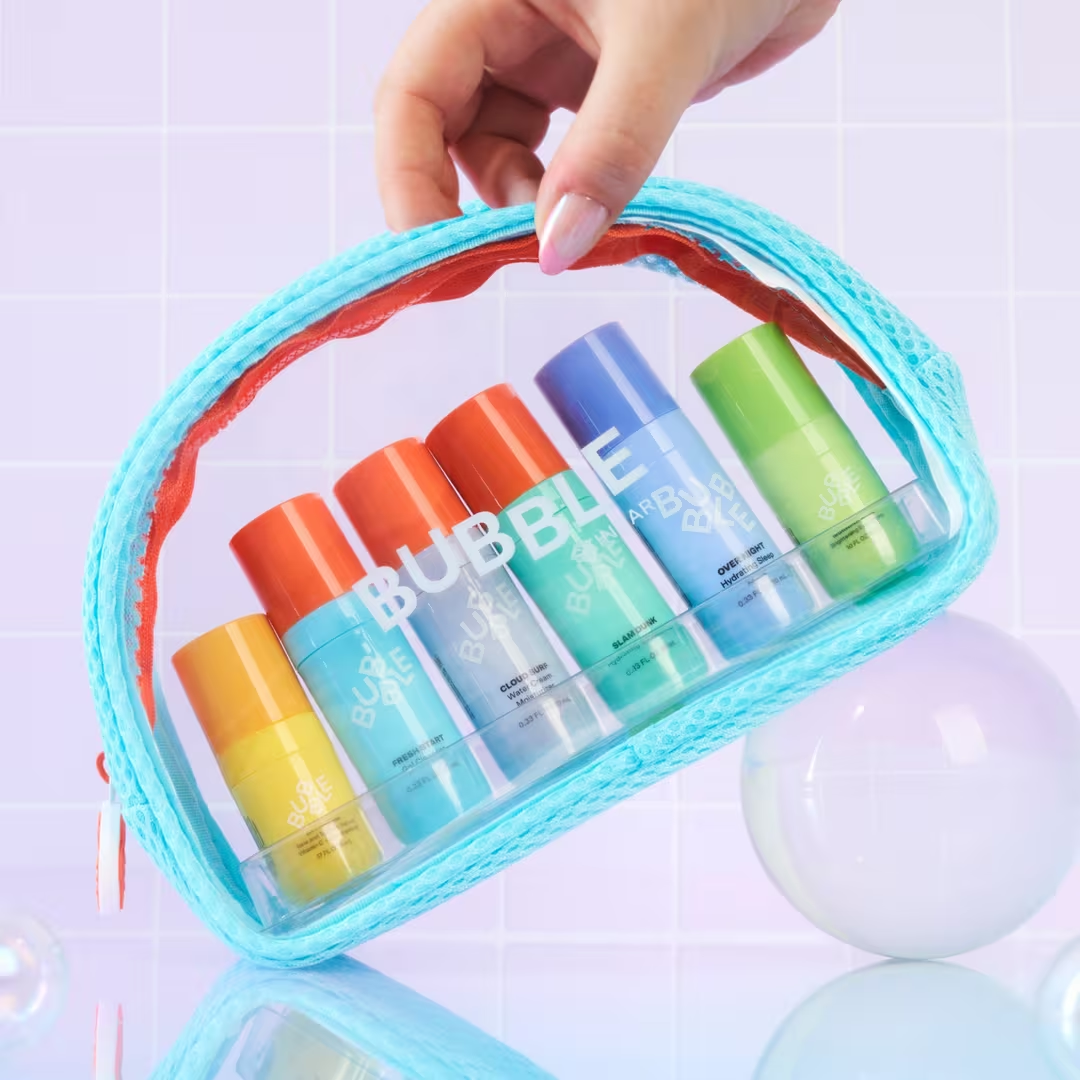 El kit de prueba Super Cuties contiene versiones en miniatura de seis de los favoritos de Bubble que cambian el rostro. Juntos forman una rutina eficaz para iluminar, hidratar y equilibrar. Disfruta de estos minis aptos para viajar en casa o mientras viajas.