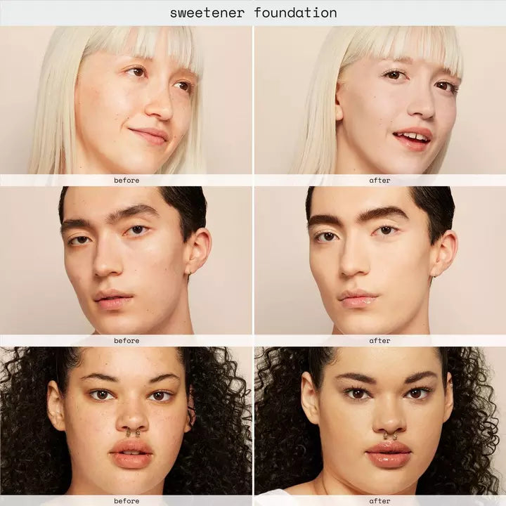 La base Sweetener de r.e.m. beauty es una mezcla clínicamente probada entre cuidado de la piel y color, que proporciona hidratación instantánea que mejora con el tiempo, con una cobertura que se puede construir y difuminar.