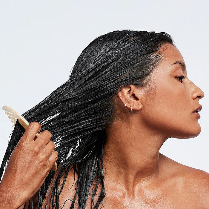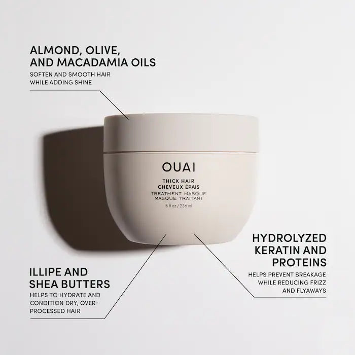 Una mascarilla que restaura la hidratación, repara los daños y aporta brillo al cabello grueso con aceites de almendras, macadamia y oliva, mantecas de karité e illipe y queratina hidrolizada.