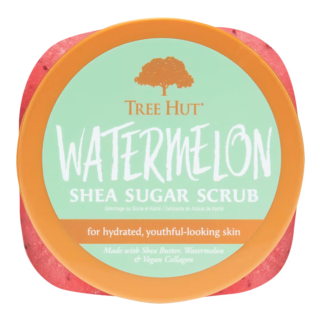 ¡Experimente una exfoliación intensa y revele una piel suave y brillante con el aroma refrescante del exfoliante de azúcar, sandía y karité de Tree Hut! Elaborado con azúcar, manteca de karité, sandía, colágeno vegano y una variedad de aceites naturales como aceites de onagra, aguacate, macadamia, almendras dulces, cártamo y naranja.