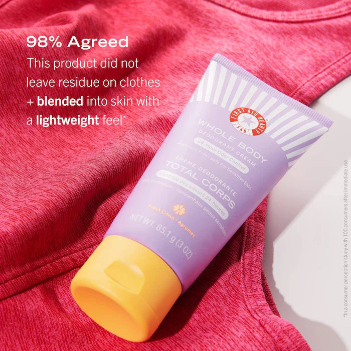 Una crema desodorante para todo el cuerpo con hasta 24 horas de control de olores, un ligero aroma cítrico y una fórmula invisible sin aluminio, para que te sientas seco y fresco.